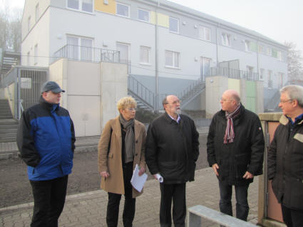 Foto: Herr Wollny (Wohnbau), Marion Lipinski-Naumann, Gerhard Lehmkühler, Herr Siegel (Wohnbau) und Manfred Bastian Die SPD-Fraktionsfraktionsvorsitzende Marion Lipinski-Naumann, Fraktionsvize Gerhard Lehmkühler und das Aufsichtsratsmitglied der Koblenzer Wohnbau und Ratsmitglied Manfred Bastian informierten sich vor Ort über das Ergebnis des Stadtumbaus am Luisentum. Gefördert wird das Projekt aus dem Landesförderprogramm “Soziale Stadt“ und der Förderung für Mietwohnungsumbau.
