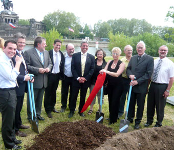 Gegenüber der Festung Ehrenbreitstein und des Deutschen Ecks pflanzte Ministerpräsident Kurt Beck, MdL (SPD) im Beisein von Oberbürgermeister Dr. Eberhard Schulte-Wissermann (SPD) und Staatssekretär und BUGA-Beauftragten Roger Lewentz (SPD) den ersten Baum zur BUGA2011.