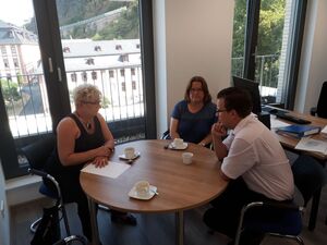 Die Ratsmitglieder der SPD-Fraktion Marion Lipinski-Naumann und Marion Mühlbauer machten sich vor Ort ein Bild vom Fortschritt der Bauarbeiten im neuen Gesundheitszentrum in Ehrenbreitstein. Der Geschäftsführer der Bauherrengesellschaft ‚Gesundheitszentrum Rechts des Rheins‘, Jörg A. Kienle, schilderte beeindruckend den Erfolg des Konzeptes.